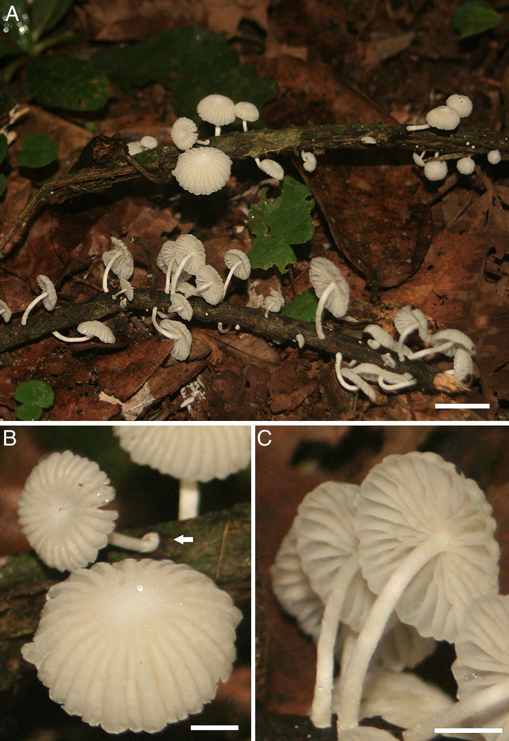 Marasmiellus volvatus Singer, Fieldiana Botany 21: 37. 1989 (figs. 1-2)