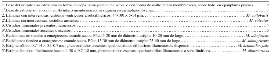 Clave de las especies neotropicales de Marasmiellus sección Candidi :
