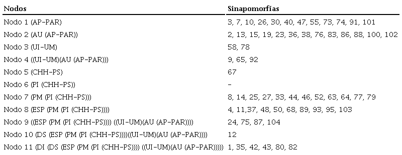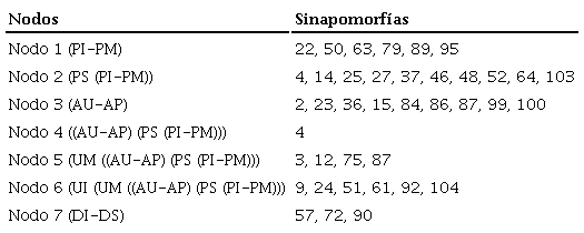 El PAE es un método que permite encontrar relaciones entre áreas basado en los patrones naturales de distribución en concordancia con sus taxones compartidos por medio de algoritmos de parsimonia, que dan como resultado una clasificación jerárquica de unidades biogeográficas (Crisci, Katinas y Posadas, 2000; López et al., 2008). La matriz (Anexo 1) se analizó con el programa TNT 1.1. (Goloboff, Farris y Nixon, 2008). Se aplicó una búsqueda heurística con 100 réplicas y permutación entre ramas con el algoritmo TBR. El soporte de las ramas fue basado en un análisis de Jacknife. A fin de caracterizar las áreas se utilizaron las especies exclusivas (sinapomorfías) para cada área, que equivalen a un clado (López et al., 2008).