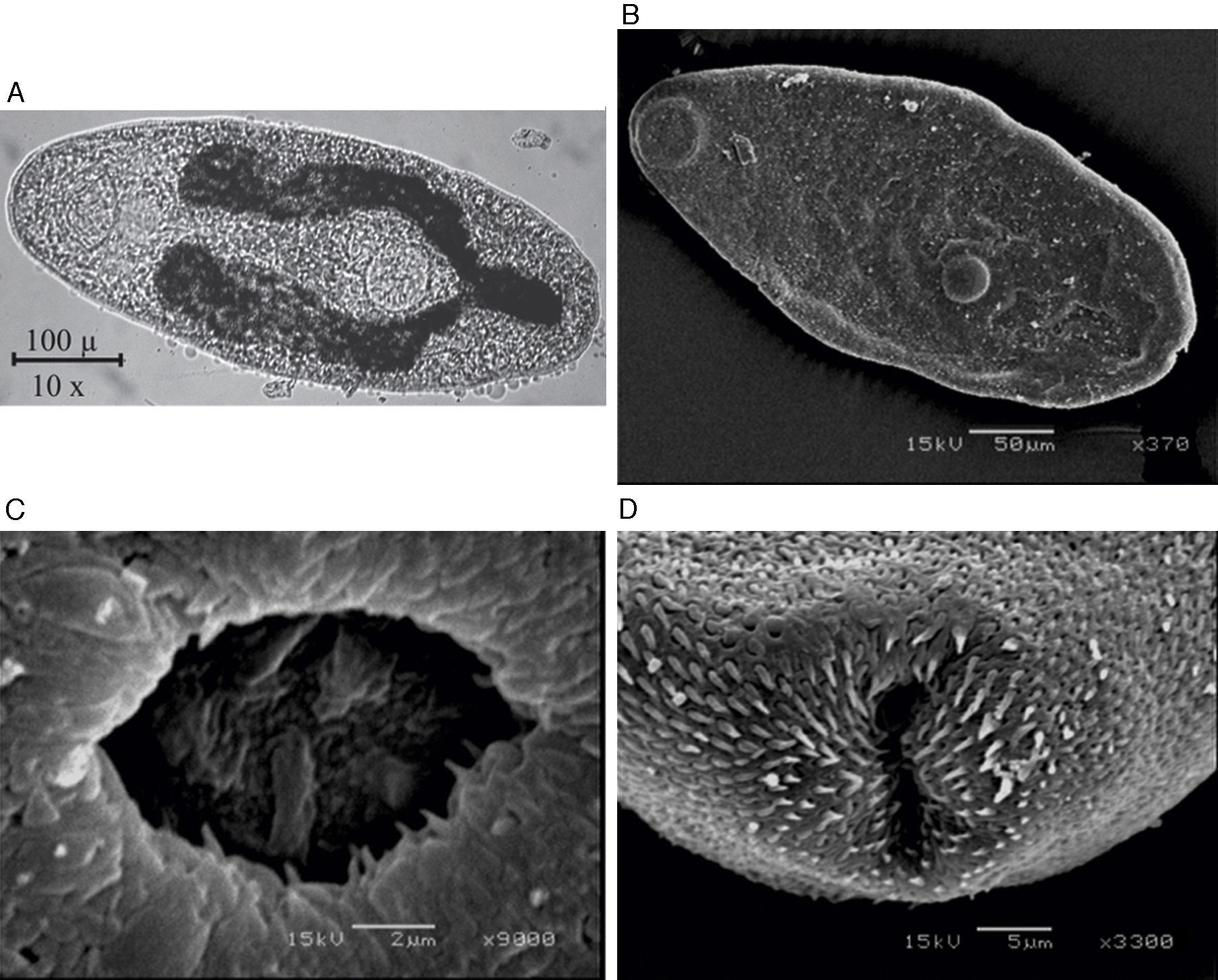 In order to identify the parasites, the crayfish were dissected and each anatomical unit (antennules, antennas, maxillipeds, mandibles, maxils, periopods, pleopods, uropods, telson, gills and internal organs) was examined under stereo and compound microscopes. Once metacercaria cysts were identified and extracted from each anatomical unit, excystation was induced in water at room temperature and by occasional shaking. Photographs of the metarceriae were taken with a digital camera (Pentax-Optio 33 L) and the parasites were fixed for 2 weeks in 4% formaldehyde and then transferred to 70% ethanol. (Scholz et al., 2000; Vidal-Martínez, Aguirre-Macedo, Scholz, González-Solis, & Mendoza-Franco, 2002). Some metacercarie were flattened between 2 slide glasses and stained with Delafield's hematoxylin or alcoholic hydrochloric carmine, cleared in clove oil and mounted in synthetic resin (Vidal-Martínez et al., 2002). The metacercariae were observed under a photomicroscope Axiophot Zeiss.