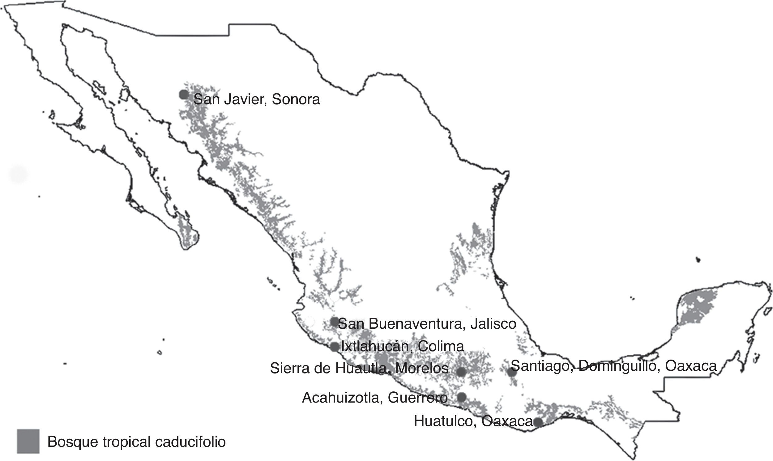 En México, los bosques tropicales caducifolios (BTC) (Rzedowski, 1978) o selvas bajas caducifolias (Miranda y Hernández-Xolocotzi, 1963) presentan la mayor cobertura vegetal tropical y están más ampliamente distribuidos en la vertiente del Pacífico que en la del Atlántico (Trejo, 2010). Se estima que este tipo de vegetación ha perdido más del 70% de la cobertura que originalmente tenía en el país (Trejo-Vázquez y Dirzo, 2000), debido principalmente a actividades antropogénicas que aceleran el proceso de fragmentación de la selva baja, con la consecuente pérdida de la biodiversidad que se aloja en estas selvas (Miles et al., 2006). Ante esa situación, en las últimas décadas se ha incrementado de forma considerable el interés por estudiar la biodiversidad del BTC mexicano (p. ej., Ceballos et al., 2010; García-Aldrete y Ayala-Barajas, 2004; Noguera, Vega-Rivera, García-Aldrete y Quesada-Avendaño, 2002). La diversidad de especies es el resultado de las interacciones ecológicas entre éstas y de sus relaciones con el medio ambiente, además de la historia evolutiva y biogeográfica de las regiones y la biota que la habita (Halffter y Moreno, 2005; Lobo, 2001). Para comprender la importancia de todos esos elementos es necesario el estudio conjunto de los diferentes niveles de diversidad: alfa, beta y gamma (Halffter y Moreno, 2005).