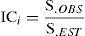 donde ICi es el índice de completitud, S.OBS, las especies observadas para el área de análisis y S.EST, las especies estimadas para el área de análisis por el modelo de Chao 2.