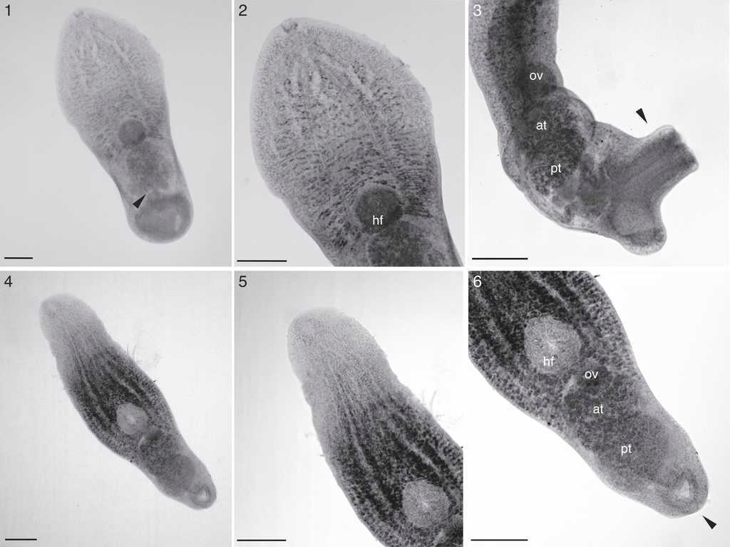 Telorchis birabeni has a characteristic posterior part of body that constitutes a cupuliform formation (Fig. 14), which opens to the excretory pore. According to Mañé-Garzón and Gil (1961a), this characteristic, unique among Telorchis species, justifies the description of a new genus for this species. A review of the species of Telorchiidae of South America could contribute to the description of a new genus.