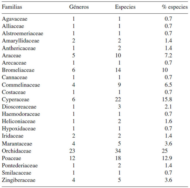 Las monocotiledóneas del municipio de San Juan Colorado, Oaxaca, México