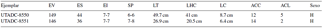 Agradecemos a Christian Chávez por proveernos el ejemplar UTADC-8550, a Rubén A. Carbajal-Márquez por sus comentarios y sugerencias en la versión previa del escrito, y a José Carlos Arenas-Monroy por la elaboración del mapa. Así como al Dr. José Rogelio Cedeño-Vázquez y a 2 revisores anónimos por los comentarios aportados para mejorar la versión final.