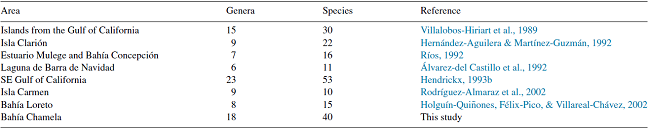 Previous records in Mexico. Gulf of California, Baja California Sur: Bahía Concepción (Ríos, 1992), Isla Espíritu Santo (Kim & Abele, 1988). Nayarit: Isla Isabel (Camacho, 1996; Kim & Abele, 1988).