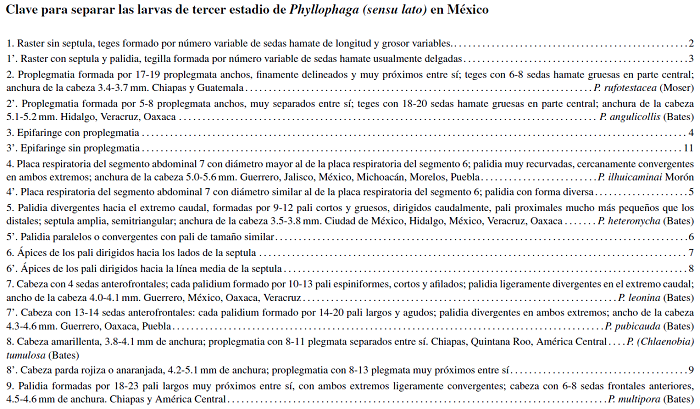 Keywords: Taxonomy, Melolonthini, White grubs, Pupae, Rhizophagous larvae, Forest soils, Mexico.