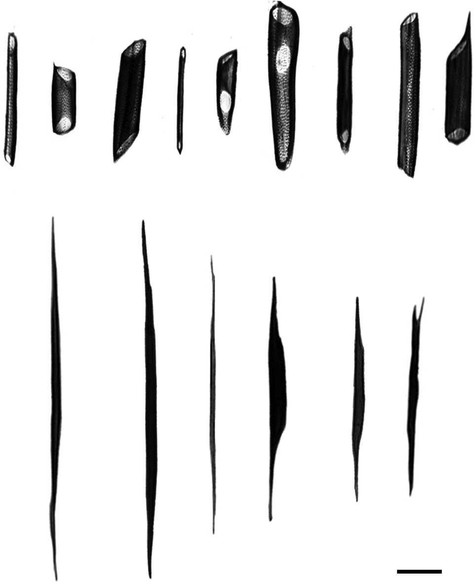 Tamaio, Neves, Brandes, and Vieira (2011) showed that multiple cambia generate several vascular rings that differ between species with successive cambium from those with composite vascular rings. According to these authors, when composite vascular rings are present, all cambia remain active and have a determined number. This is why species with composite vascular cambia show little difference in the dimensions of the tracheary elements and fibers (axial cell elements) that constitute their secondary xylem. However, when successive cambia are present, the internal cambia (closer to the pith) cease their activity, while those closer to the stem periphery remain active. When not all of the successive cambia remain active, the dimensions of axial system cells vary significantly. For example, from pith to periphery, they tend to decrease in size in Stegnosperma Benth. (Phytolaccaceae; Horak, 1981), they can be of equal size to slightly longer in Cycas L. (Cycadaceae; Terrazas, 1991) and they tend to increase in size in Phytolacca dioica L. (Phytolaccaceae; Wheat, 1977), Abuta grandifolia (Mart.) Sandwith (Menispermaceae; Tamaio & Brandes, 2010) and Cocculus hirsutus (L.) Diels (Menispermaceae; Rajput & Rao, 2003). It has been hypothesized that in species with successive cambia, tracheary elements and fiber lengths are longer in the most internal ring, which comes from the fusiform initials of vascular cambium, while the tracheary elements and fibers that originate from parenchyma cells would be shorter. The alternative hypothesis is that the tracheary element and fiber lengths increase from pith to the stem periphery, as has been described for other plants with only one vascular ring (Panshin & de Zeeuw, 1980).