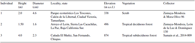 This study is part of the requirements for Silvia Zumaya-Mendoza to obtain the Doctor of Science degree from the Posgrado en Ciencias Biológicas (PCB) de la Universidad Nacional Autónoma de México. Silvia Zumaya-Mendoza thanks PCB for facilities and CONACYT for a scholarship (164721). We thank Arturo Mora-Olivo, José Luis Léon de la Luz, Reymundo Domínguez, Mauricio Mora-Jarvio and Marie Samain for their invaluable help and support in the field. Art work by Diana Martínez and Julio César Montero is also appreciated.