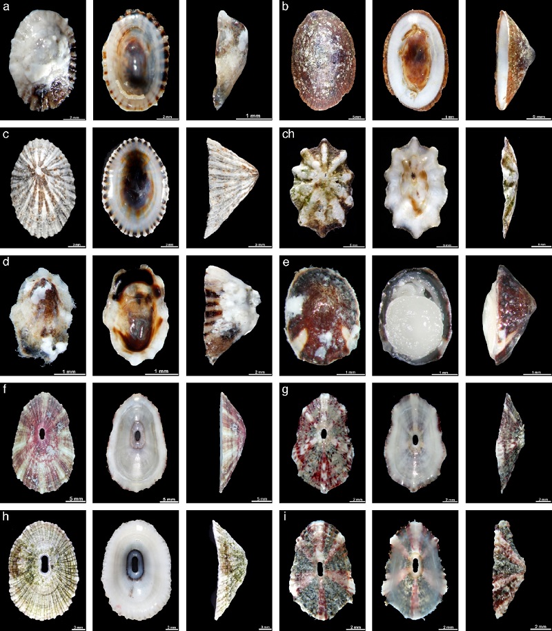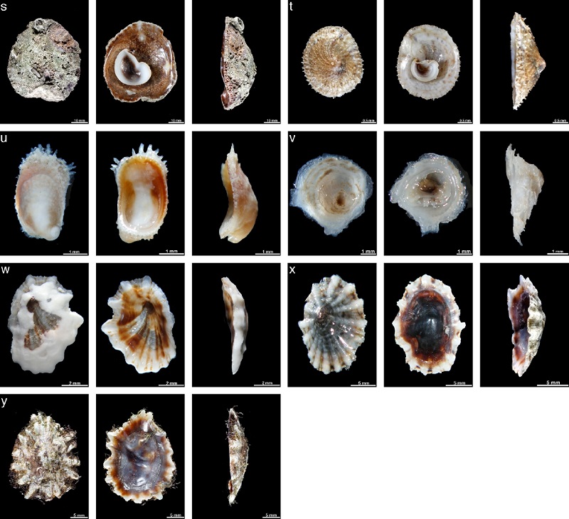 El arreglo sistemático para las categorías suprafamiliares de las especies de gasterópodos pateliformes siguió la propuesta de Bouchet y Rocroi (2005) y para poliplacóforos se utilizó la propuesta de Kaas y van Belle (1985a, 1985b, 1987, 1990, 1994). Para las categorías de familia a género de ambas clases de moluscos se utilizó la actualización de Skoglund (2001, 2002) y para la categoría de especie se empleó la propuesta de la base World Register of Marine Species (WoRMS, 2016).