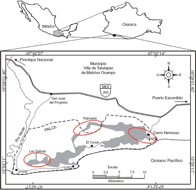 Los autores agradecen a la Universidad del Mar el apoyo logístico proporcionado y a Ignacio Carrasco Escobar (Gestión 2011-2014) del Parque Chacahua su apoyo para la gestión del recurso PROCODES de la Conanp y las distintas facilidades otorgadas en la estación de campo. Agradecemos a Oscar Hernández Bello (QEPD), Santa Ana Mariche, Giovanni Domínguez, Arnulfo Hernández, Jonhatan Marcial Mariche y Alejandro Domínguez, por su ayuda en las actividades de campo de este trabajo. Finalmente, a dos revisores anónimos que contribuyeron a mejorar este trabajo.