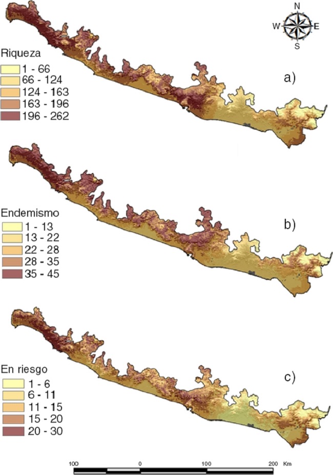 Palabras clave: Distribución potencial, Riqueza, Endemismo, Complementariedad, Análisis de parsimonia de endemismos.