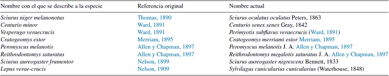Allen, J. A., y Chapman, F. M. (1897). On a collection of mammals from Jalapa and Las Vigas, state of Vera Cruz (1897). Bulletin of the American Museum of Natural History, 9, 197–208.