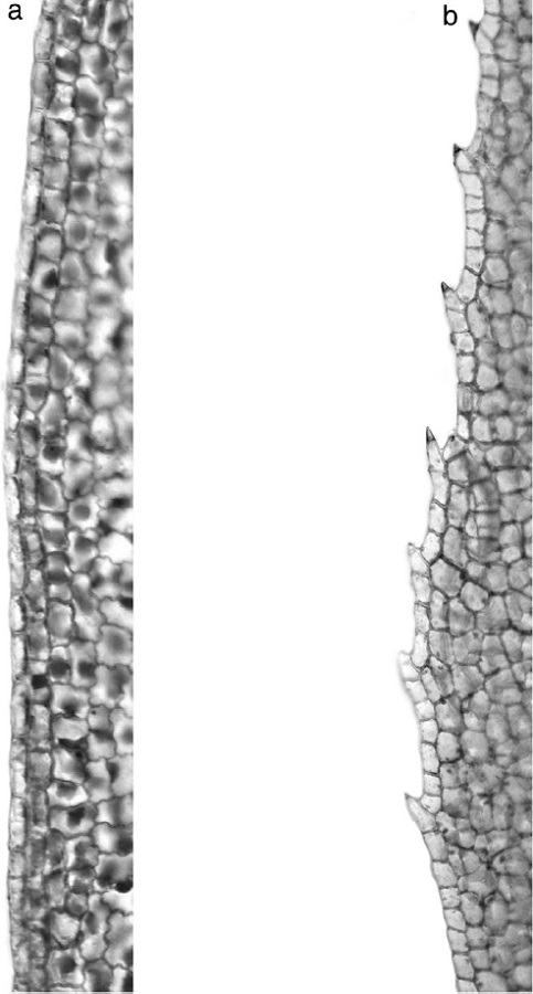 Se evaluaron varios caracteres morfológicos con valor definitorio para precisar el taxón (borde y forma de la hoja, longitud del peciolo y las escamas, nervadura), según criterios de den Hartog y Kuo (2006), Kuo y den Hartog (2001) y Phillips y Meñez (1988).