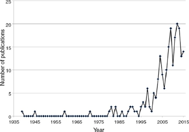 Schinus molle L., the pirú or pirul tree, was introduced in the New Spain, now Mexico, by the viceroy Antonio de Mendoza in the XVI century; the introduction, dispersal and uses were documented by Alzate and Ramírez 1791, Gómez 1889-1890, Jiménez 1873, Herrera 1896 and López y Parra 1899 (authors cited in Corkidi, Cacho, & Búrquez, 1991). Although no other purposeful introduction of a species was documented, botanists in Mexico have been well aware of introduced wild species since the early 20th century. For example, in “La Flora Excursoria en el Valle Central de México” (Reiche, 1926) several naturalized species are reported as coming from the “old world” such as Avena fatua L. and Helminthotheca echioides (L.) Gaertn (=Picris echioides L.). However, this kind of publications did not go beyond mentioning the continent of origin of the naturalized species. Thus, we concentrated on publications dedicated predominantly on non-native naturalized and/or invasive species or to those that compare native with non-native flora. Adding up the results of the ISI Web of Science and the bibliographic resources of the authors, we found 229 published articles or book chapters dealing with non-native algae (7), ferns (6) and flowering plants (216) in a period going from 1939 through 2015. The first two papers on invasive plants were published by the prominent agronomist Gabriel Itie (Cotter & Osborne, 1996). The first paper was published on Urochloa mutica (Forssk.) T.Q. Nguyen (=Panicum purpurescens Raddi), a grass introduced as forage and later escaped and became naturalized (Itié, 1939). In 1945 a paper appeared on Melinis repens (Willd.) Zizka, an African grass introduced in the 1930s to be tested as forage (Itié, 1945). This grass failed as a forage crop but escaped, mainly along roads and highways. It is now an invasive plant that has colonized roadsides all over Mexico encroaching on semi-desert scrublands, orchards and vegetation adjacent to roads and highways (Díaz-Romo et al., 2012, Melgoza-Castillo et al., 2014). There were no publications on non-native plants up to 1959, when Dr. Jerzy Rzedowsky directed his scholarly attention to invasive species documenting the spread of the invasive Salsola kali L. var. tenuifolia Tausch (Rzedowski, 1959). His attention continued to date, recognizing invasive species together with his wife in the Floras published by Rzedowski and Calderon-de Rzedowski (Flora Fanerogámica del Valle de México and Flora del Bajío), and detecting new non-native species (Calderón-de Rzedowski and Rzedowski, 2004, Calderón-de Rzedowski et al., 2001, Rzedowski and Calderón-de Rzedowski, 1985, Rzedowski and Calderón-de Rzedowski, 2005, Rzedowski et al., 2003). In 1971, a pioneer work on allelopathy of a non-native species, S. molle was published (Anaya & Gómez-Pompa, 1971). We detected no new publications until the 1980s, where 7 papers where published, one on urban floristics distinguishing native and non-native weeds (Rapoport, Díaz-Betancourt, & López-Moreno, 1983), 2 on non-native species detection (Espinosa-García, 1981, Lot et al., 1980), 2 on chemical control (Magallanes et al., 1986, Tamayo-Esquer and Gaillardon, 1989) and 2 on ecological aspects of Nicotiana glauca Graham (Hernández, 1981) and Eichhornia crassipes (C. Mart.) Solms. (Niño-Sulkowska & Lot, 1983). In the1990s, after Rzedowski and Calderón-de Rzedowski (1990) published an important paper on African weeds naturalized in Mexico, a paper on the dispersal of S. molle by birds (Corkidi et al., 1991) together with another important paper on the sinanthropic Asteraceae in Mexico (Rzedowski, 1993), a fluctuating increase in publication is observed through 2015 (Fig. 2). Although the publication increase is notorious since 1999, it is far from the huge increase in international publications. The fluctuations are probably related to the activity of a few individuals who have a primary, but not unique, interest on non-native plants. For example, the authors publishing new reports of non-native species (Table 2) are or were primarily agronomists, taxonomists, specialists in floristics, ethnobotanists or ecologists.