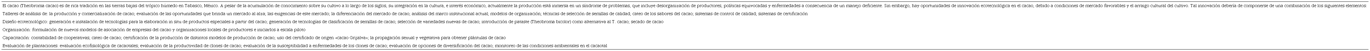 En el contexto actual de cambio global, en particular del calentamiento global, la población necesita ajustar el uso del suelo y la infraestructura a sus estrategias de manejo. Para ello, se requiere que la investigación básica y aplicada contribuya a un mayor conocimiento de cómo los agroecosistemas responden a la variación climática. Combinando este conocimiento científico con el conocimiento campesino, que sustenta a los sistemas tradicionales de producción, se pueden aportar innovaciones para el desarrollo de alternativas de sistemas alimentarios sustentables regionales. Innovación, adaptación, planeación, modelación son aspectos que requieren de la combinación de conocimiento local y científico sólido en ecología, sobre la relación entre variables climáticas y edáficas, las relaciones planta-suelo, interacciones bióticas, y ajustes fisiológicos de las plantas manejadas en el entorno del agroecosistema. No es adecuado ya construir estos conocimientos únicamente desde la perspectiva de los académicos y luego transferirla. La generación de innovación ecotecnológica dirigida a la producción agrícola sustentable depende de manera crítica del intercambio de conocimientos y la participación activa de los actores, incluyendo los productores, desde el inicio. El diseño de metas de producción sustentable requiere de métodos creativos y herramientas innovadoras, donde el conocimiento ecológico es central (Tabla 1).