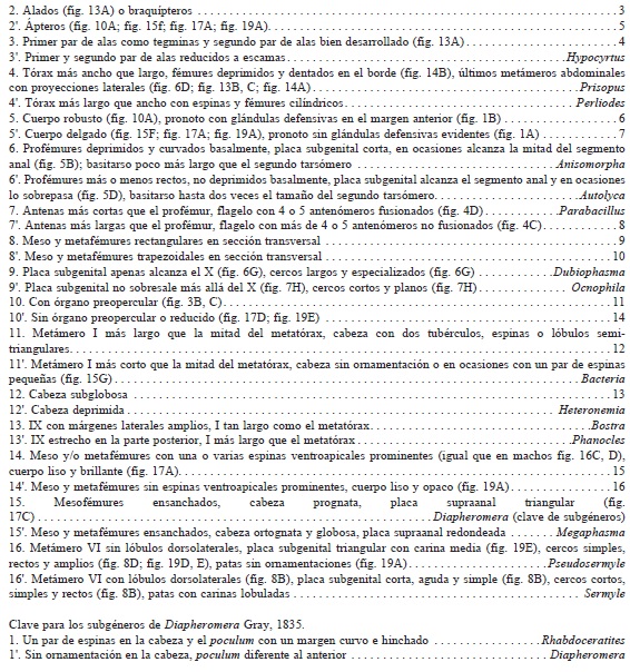 Palabras clave: Insectos paloInsectos palo,Clave taxonómicaClave taxonómica,PhasmidaPhasmida.