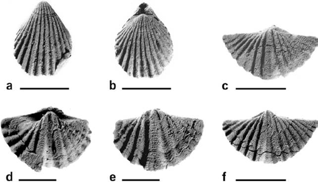La distribución de los braquiópodos en el pasado geológico está determinada por una serie de factores ambientales tales como la profundidad, el tipo de sustrato y la disponibilidad de alimento (Ager, 1967; Rudwick, 1962). Fürsich y Hurst (1974, p. 889) consideran que en algunos braquiópodos de aguas profundas (órthidos, estrofoménidos, rinconélidos) se observa una tendencia a un menor tamaño y que esta tendencia es inversa con respecto a lo que ocurre con espiriféridos y pentaméridos; otras adaptaciones relacionadas con la profundidad del agua son el desarrollo de aletillas y surcos para la separación de corrientes en planos horizontales y verticales, y la formación de fuertes deflexiones medias para facilitar la separación de las corrientes inhalantes y exhalantes. Ager (1967), Rudwick, (1962), Fürsich y Hurst (1974) proponen también una serie de adaptaciones morfológicas para los braquiópodos que habitan zonas con turbulencia como son el engrosamiento de la concha, el desarrollo de costillas gruesas, la formación de aberturas pedunculares fuertes y la generación de aletillas y surcos más marcados; para el caso de conchas resupinadas de braquiópodos de aguas de fondos suaves mencionan la generación de amplias superficies de contacto con el sustrato.