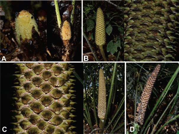 Abstract: This study addresses the taxonomic identity of Ceratozamia tenuis (Dyer) D. W. Stev. & Vovides, 2016, a binomial that has been related historically with the taxonomic concept of C. mexicana Brongn., 1846. We describe the phenological stages of the C. tenuis, the reproductive period, and the degree of synchrony between males and females in natural habitat. Our results show that the reproductive period between pollen plants and ovulate plants is not synchronous. All ovulate plants in the populations studied emerge from August to October and exhibit the same time scale of growth, and thus their receptivity is synchronous. In contrast, pollen plants have a differential emergence period in the populations that lasts for more months and displays different growth rates. The correspondence in receptivity between pollen and ovulate occurs from January to March, but at the population level some pollen plants will continue their development and not reach maturity until July. In addition, we describe the recent discovery of epiphytism for the species; the epiphytic habit constitutes an ecological condition that had not previously been reported for the genus. Finally, we discuss the implications of these ecological features for dispersal.