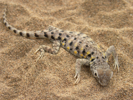 The specimen designated as neotype has a dorsum color as light brown or gray color, similar to the sand on which they live. On the dorsal neck are 2 small black spots which are in parallel along to the dorsal body, where they get larger. Each side of the neck has black spots of the medium size, forming 2 parallel bands along the dorsum similar to those previously described. Scapular area shows a black spot subsequently followed a yellow spot, a pattern which is along the dorso-thoracic region; subsequently the yellow spots are located to the ventral side, which is repeated to the inguinal region. The black spots on median dorsal side area accompanied by small white spots. Along the dorsum 4 bands of rounded and black spots, the 2 most lateral with larger spots can be observed. On the tail there is a pattern of black spots laterally disposed, a pattern repeated to the end of tail. Ventrally there is a heavily variegated pattern, more intense on the lateral side and throat. Fore limbs without spots, hind limbs with white scales on the anterior thigh, accompanied with some black scales, without yellow spots.