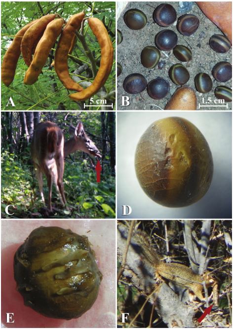 Abstract: We identified some interactions between fruits/seeds of Heteroflorum sclerocarpum (Leguminosae) and terrestrial mammals of a Mexican tropical dry forest. The mammals that consume the fruits and seeds of this species were detected using camera traps, and by observations in captivity and field, it was determined how mammals manipulate these structures and could influence their dispersion. Germination tests were carried out in the field and shade house to determine if seeds could germinate being outside the fruits, or inside intact fruits, or after having been manipulated by mammals. In the laboratory, we placed to germinate seeds mechanical or chemically scarified by some consumers. In 3 locations the spatial distribution of H. sclerocarpum individuals was determined, as well as the proportion of dispersed and undispersed individuals. We recorded interactions between the fruits and seeds of this species and some terrestrial mammals (cows, coatis, deer, ground squirrels and mice) during the fruiting season, which favored the release of seeds from the fruits, allowing and/or accelerating germination. A good knowledge of plant-animal interactions contributes to the understanding of the structure and functioning of tropical forests, and allows the development of adequate strategies for their conservation.