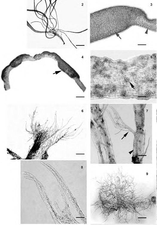 Ulva chaetomorphoides (Børgesen) Hayden, Blomster, Maggs, P.C. Silva, M.J. Stanhope y J.R. Waaland (Figs. 6-8).