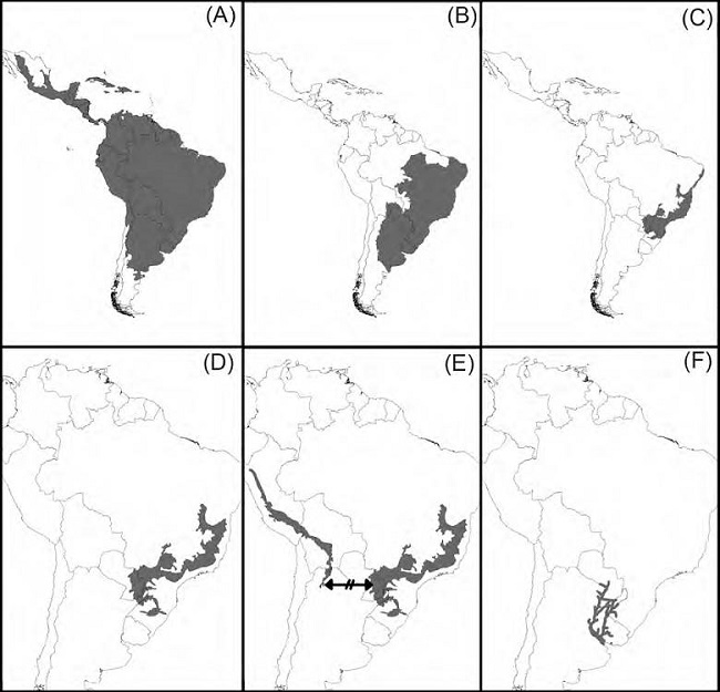 La superposición de las distribuciones geográficas de 2 o más organismos indica la existencia de un área de endemismo (Noguera-Urbano, 2016; Platnick, 1991). Por lo tanto, en este trabajo se remarcarán adicionalmente las especies restringidas al sistema fluvial para detectar si el mismo constituye un área de endemismo y se puede o no considerar una unidad en los esquemas de regionalización.