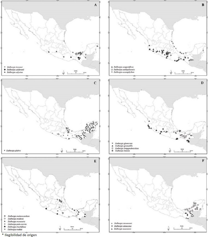 Although the species included in this checklist represent the current state of knowledge of the native species of Mexican Dalbergia, it is expected that as part of the dynamic process of taxonomy, there may be adjustments in the light of new observations and registries, as well as with the incorporation of new evidence coming from molecular studies that will help to elucidate limits among species, phylogenetic affinities, and the general patterns of diversification of the Mexican Dalbergia species.