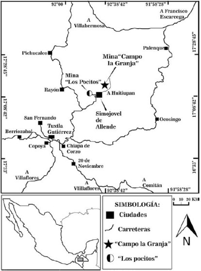 El espécimen inmerso en ámbar proviene de la mina “Campo la Granja”, ubicada a unos 800 m al noreste (17°80’48.35” N, 92°42’30.50” O) del municipio de Simojovel de Allende (Fig. 1). Estratigráficamente, la mina se ubica en el Miembro Finca Carmito, que corresponde al límite superior de la Formación La Quinta y ha sido datada en 22.8 Ma (Serrano-Sánchez et al., 2015).
