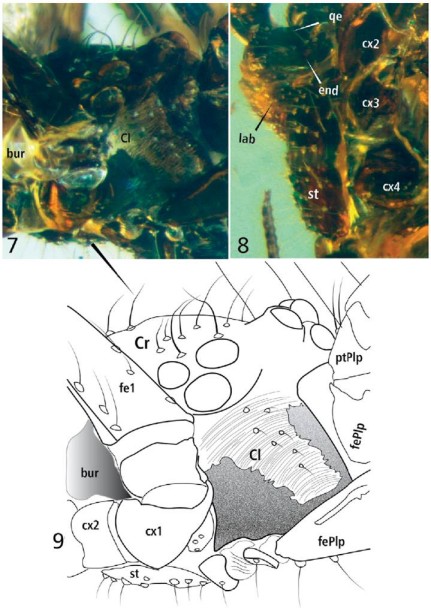 En especial a Jorge Alberto Mijangos Robledo, quien amablemente ha donado piezas importantísimas de ámbar, con inclusiones de arañas, a la Colección Paleontológica del Museo de Paleontología “Eliseo Palacios Aguilera”. A Roberto Vidal López, quien cortesmente me brindó acceso a su equipo fotográfico. A Bernhard A. Huber (Alexander Koenig Zoological Research Museum), por haber corroborado la identificación del género, así como por los importantes comentarios y correcciones vertidas al manuscrito. A mi colega Gerardo Carbot-Chanona, por las sugerencias que ayudaron a mejorar el texto. A los revisores anónimos, por los acertados comentarios, sugerencias y correcciones. Esta investigación se llevó a cabo como parte del proyecto “Prospección y Resguardo del Patrimonio Paleontológico de Chiapas”, financiado por el Gobierno del Estado de Chiapas. Este artículo está dedicado a la memoria de Sinar Corzo Esquinca.