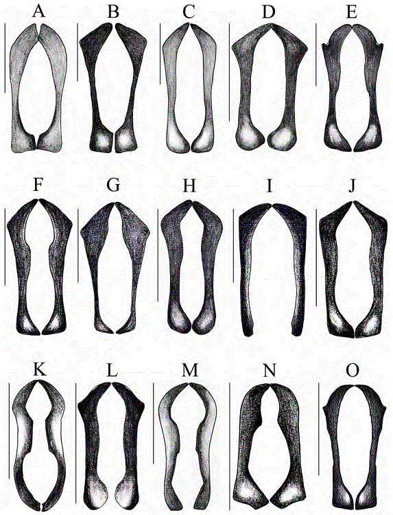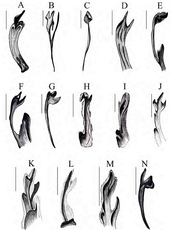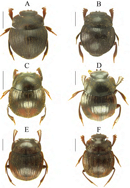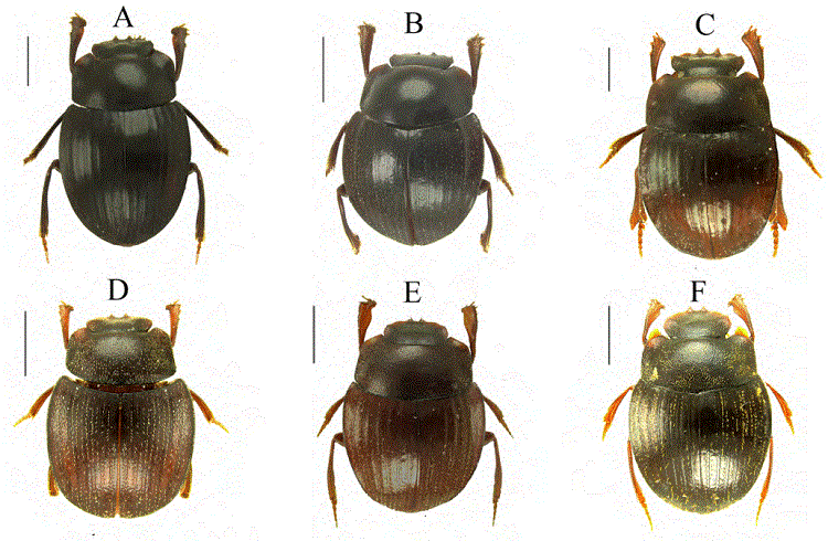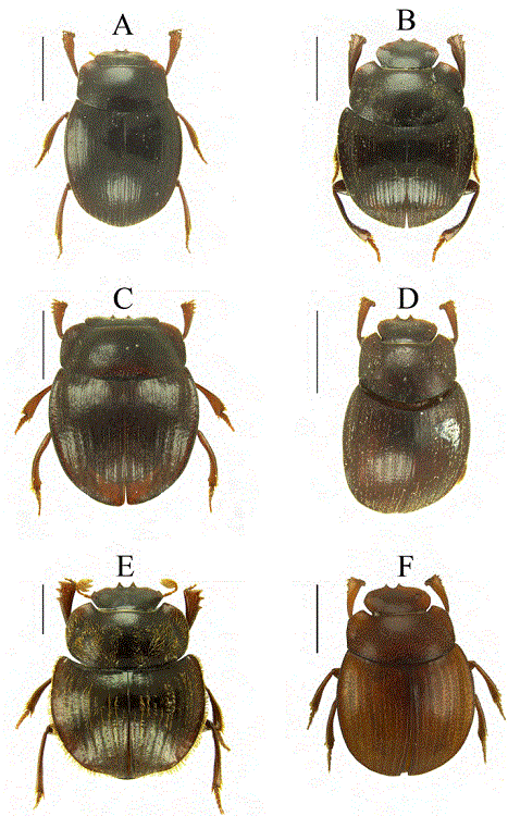 La terminología para los caracteres morfológicos internos y externos usados se basan en Howden (1973, 1976) y Cook (2002). La extracción de los órganos genitales se realizó siguiendo la metodología propuesta por Medina et al. (2003). Las estructuras esclerotizadas se aclararon en una solución diluida de hidróxido de potasio (10%) y se neutralizaron en una solución diluida de ácido acético (15%). Los órganos genitales se preservaron en un vial con glicerina el cual se ubicó debajo del espécimen. Los escleritos del saco interno de los parámeros se nombraron siguiendo la terminología de Medina et al. (2013) y Arias-Buriticá y Medina (2014). La descripción del esclerito placa y elongado se basó en la terminología de Gonzalez y Vaz de Mello (2014). Con el fin de observar estructuras taxonómicas importantes (foveas, suturas, surcos y microescultura), los especímenes se lavaron con un limpiador ultrasónico UD1005H-3L siguiendo las recomendaciones de Howden (1973) y fueron examinados usando un estereomicroscopio Nikon SMZ 645 a una magnificación de 6.5-40X. Las medidas de largo total y ancho humeral se realizaron con un micrómetro ocular. Las imágenes del hábito dorsal de las especies y caracteres morfológicos usados en las descripciones fueron tomadas con una cámara MC 190 HD marca Leica de 10 megapixeles adaptada a un estereomicroscopio Trinocular Leica-S8 APO, apilando una serie de fotografías con el programa Helicon focus (Helicon Soft). Los datos espaciales para elaborar los mapas de distribución fueron obtenidos en los lugares de recolección y la información consignada en las etiquetas de los especímenes se convirtió en capas vectoriales de puntos con el programa ArcGIS 10.2 (ESRI 2011, Licencia E300 04/26/2013).