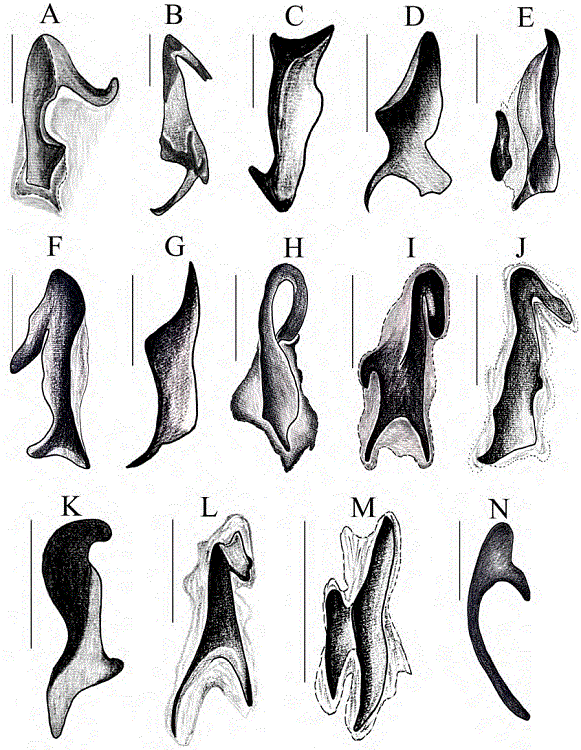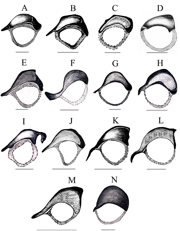 Hipómero con carena basal (fig. 8F) . . . . . . . . . . . . . . . . . . . . . . . . . . . . . . . . . . . . . . . . . . . . . . . . . . . . . . . . . . . . . . . . . 9