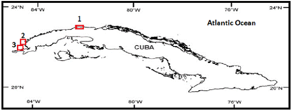 The genus Lobophora (Dictyotales, Phaeophyceae) is one of the most common genera of marine brown algae. This genus has a pantropical distribution which includes the Atlantic, Pacific and Indian Oceans (Vieira et al., 2017). It can be found growing in a variety of habitats, from tropical to temperate, on reefs and rocky shores (Camacho et al., 2019). This genus is ecologically important in Caribbean reef systems, since it is an efficient competitor with corals for space (Camacho et al., 2019). According to Vieira et al. (2016), this is a morphologically variable genus. It can be found from crustose species tightly attached to the substratum to erect species. Historically, just 1 taxon Lobophora variegata (J.V. Lamoroux) Womersly ex E.C. Oliveira (Schultz et al., 2015) has been recognized in the Greater Caribbean Sea. The holotype of L. variegata was collected in Guadeloupe and was the only known species of the genus Lobophora during decades (Vieira, Morrow et al., 2020). This species was also recognized as displaying different morphotypes (crustose, erect and decumbent forms) by De Ruyter van Steveninck et al. (1988) and Littler and Littler (2000). However, according to Vieira et al. (2016), the genus Lobophora does not only display different morphological forms, but also can inhabit several ecological niches. Recent studies have demonstrated that the genus Lobophora is more diverse than historically stated (Camacho et al., 2019; Schultz et al., 2015; Sun et al., 2012; Vieira et al., 2016; Vieira, Henriques et al., 2020; Vieira, Morrow et al., 2020). These authors argued that different morphotypes and ecotypes can differentiate one species from another. The morphological and molecular criteria are being used to identify several new species in different regions of the Greater Caribbean Sea and the rest of the world. The external and internal characters of Lobophora are also used to distinguish between species. Currently 47 species of Lobophora are taxonomically accepted (Guiry & Guiry, 2020). For the Greater Caribbean Sea, 18 species of Lobophora have been documented and 11 are exclusive for this region (Vieira, Morrow et al., 2020). These 11 endemic species include: L. declerckii N.E. Schultz, C.W. Schneider and L. Le Gall, 2015; L. guadeloupensis N.E. Schultz, F. Rousseau and L. Le Gall, 2015; L. colombiana O. Camacho and Fredericq, 2019; L. crispata O. Camacho and Fredericq, 2019; L. tortugensis O. Camacho and Fredericq, 2019; L. aghardii Payri and C.W. Vieira, 2020; L. dickiei Payri and C.W.Vieira, 2020; L. lamourouxii Payri and C.W. Vieira, 2020; L. richardii C.W. Vieira and Payri, 2020; L. sp. 90 C.W. Vieira and Payri, 2020; and L. variegata (J.V. Lamouroux) Womersley ex E.C. Oliveira, 1977 (Ballantine et al., 2019; Camacho et al., 2019; Delnatte & Wynne, 2016; Godínez-Ortega et al., 2018; Schultz et al., 2015; Vieira et al., 2016). The Eastern and the Central Caribbean are the most diverse regions in the Greater Caribbean Sea with 16 species. Despite of all these records for the region only 2 species, L. variegata and L. canariensis (as Aglaozonia canariensis Sauvageau, 1905), have been reported for Cuba. For this reason, a taxonomic study was carried out from 3 areas of western Cuba.