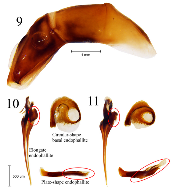 Measurements and pictures were taken using a Leica Z16APOA stereomicroscope with Leica Smart Touch and Leica DMC2900 camera (Leica, Wetzlar, Germany) using the manufacturer´s software and the z-stack image capture method (except for Figure 13). The stereomicroscope lightning was substituted (except for the endophallites) to obtain adequate color images as follows: a cylinder made of matte drafting acetate functioned as a light diffuser, while a cylinder made of a rolled LED light strip (300 LEDs / 5 m, 12 Vcc, white 6,000-7,000 k, LED 3,528, 13 W/h; Steren, Mexico City, Mexico) was used as light source. Final multistack images were edited using a Wacom Intuos PEN tablet CTL-6100WL (Wacom Co., Ltd., Toyonodai Kazo-shi, Saitama, Japan) with Adobe Photoshop CC v. 2015 (Adobe Systems Incorporated, San José, California, USA) and CorelDRAW X7 v. 17.0.0.491 (Corel Corporation, Ottawa, Canada).