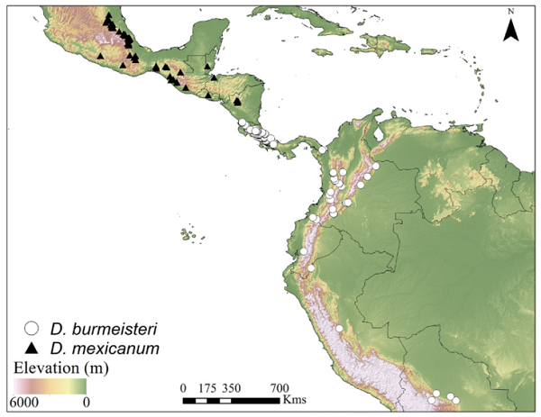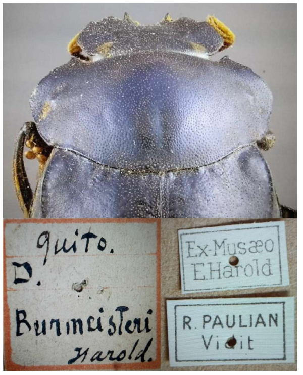 Despite D. burmeisteri and D. mexicanum have been previously considered as synonyms (González et al., 2009; Howden, 1966; Howden & Young, 1981; Paulian, 1939; Pereira & D’Andretta, 1955), differences in morphology between them have been highlighted before our work. The first author who highlighted the differences in body color was Bates (1887), asserting that Mexican specimens were “dull bluish-black” while the Costa Rican and Panamanian specimens were “rich dark blue”. Even Paulian (1939) recognized the blue mate color in D. mexicanum: “En Amérique du Sud, l’espèce est généralement noire, seul le type de Harold faisant exception à ma connaissance; en Amérique centrale et au Mexique, aue contraire, elle est généralement d’un bleu plus ou moins mat” - In South America, the species is generally black, to my knowledge only the Harold’s type is the exception; contrary to Central America and Mexico, it is generally blue mate. Moreover, Howden (1966) mentioned that “the species ranges from Mexico into South America, with Mexican specimens, in general, having the purple or bluish color more subdued”.