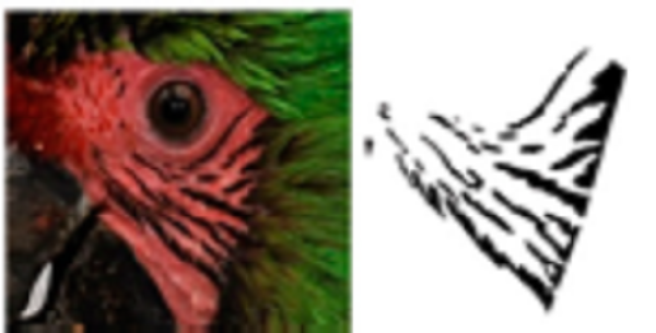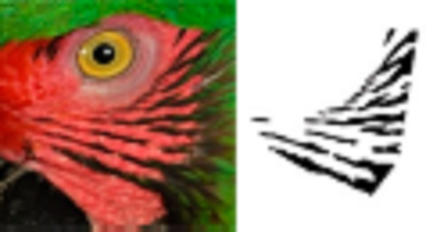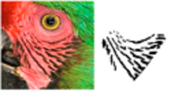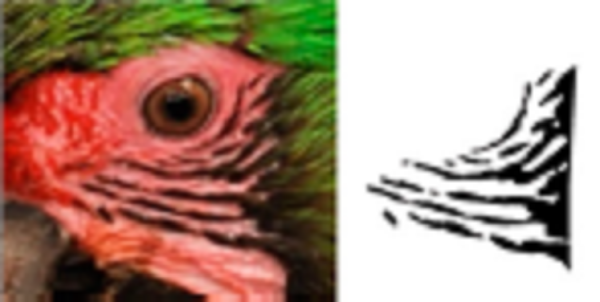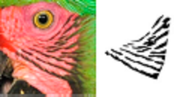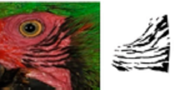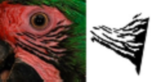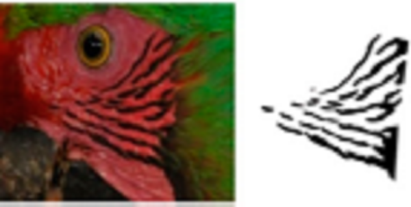 To have a complete and defined view of the face feathers, we reframed all photographs to include only the face area of each of the macaws (Fig. 1B), in which the natural markings formed by the feathers in the cheeks form a unique pattern of black lines (hereafter feather pattern), which was isolated for further analysis (Fig. 1C). The size of the photographs was 750 × 750 pixels, which is required to input the photographs into SISREC 1.0 for the automatic recognition of images (Padilla-Ramírez, 2012).