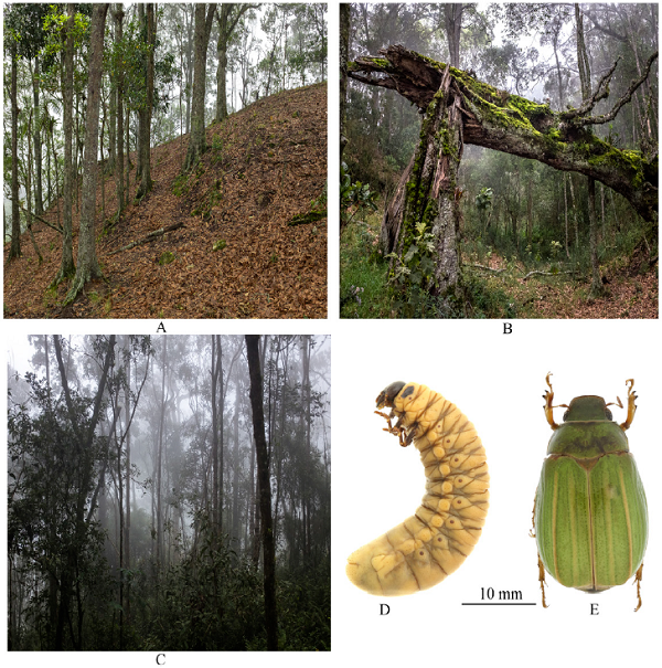 Biología. Adultos de hábitos nocturnos, generalmente atraídos por las fuentes de luz. Vuelan entre las 7:00 PM a las 04:00 AM. La emergencia de adultos se presenta en la segunda temporada de lluvias del año (octubre-diciembre), con algunos especímenes que emergen hasta junio. Las larvas se desarrollan en el suelo de robledales (Quercus humboldtii Bonpland, 1805, Fagaceae), a una profundidad de 10 a 25 cm. Las larvas pupan en una celda (28.01-30.01 mm de largo), que elaboran con tierra entre 25 a 30 cm por debajo de la superficie. La pupa queda inmersa en la exuvia larval como en todo los otros Rutelinos (Neita y Morón, 2017). El hábitat de robledales es fundamental para los escarabajos Pleurosticti en zonas altoandinas, ya que constituyen un componente importante de la edafofauna, la cual contribuye en los procesos de descomposición de la materia orgánica depositada en el suelo, producto de los eventos de muerte de estos árboles.
