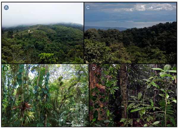 Distribution: in the cloud forests (Fig. 18A, B) of Cordillera de la Costa montane forest (NT0117) and La Costa xeric shrub lands (NT1309) ecoregions (Fig. 17).