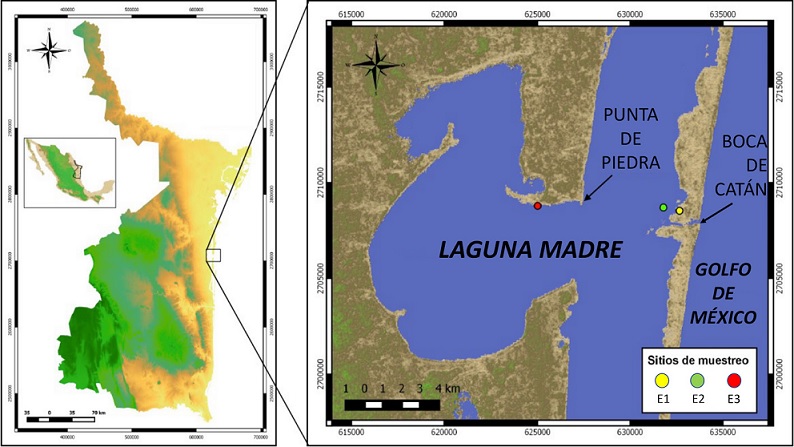 En el golfo de México, la laguna Madre es el ecosistema estuarino más grande de México (Contreras y Castañeda, 2004). Por sus características físicas, químicas y biológicas provee bienes y servicios que sustentan una alta biodiversidad, el desarrollo de la comunidad bentónica estuarina y la economía del sector pesquero y productivo (Leija-Tristán, 2005; Semarnat, 2015). Se han reportado 96 especies de crustáceos, de las cuales 14 son camarones carídeos (Leija-Tristán et al., 2000). Los Caridea, con ca. 3,500 especies conocidas en todo el mundo, representan el segundo infraorden más diverso entre los crustáceos decápodos y el primero entre los camarones. En la laguna Madre y otros sistemas costeros del golfo de México, T. carolinense se ha reportado como una especie de gran abundancia, sólo superada por Hippolyte zostericola (Barba-Macías, 2012; Herrera-Barquín et al., 2018). A pesar de los atributos ecológicos de abundancia y amplia distribución, los estudios sobre T. carolinense en la laguna Madre, se han enfocado primordialmente a su participación como parte de la comunidad en listados faunísticos (Barba-Macías, 2012; Barba-Macías et al., 2005; Herrera-Barquín et al., 2018; Leija-Tristán et al., 2000; Rodríguez-Almaráz et al., 2000). El presente trabajo se enfocó en el análisis comparativo del crecimiento individual, el factor de condición y la condición relativa del camarón Tozeuma carolinense durante los periodos de estiaje y lluvias del año 2014.
