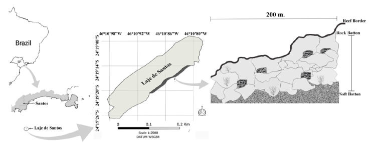 “No-take” Marine reserves (NTM) are areas completely protected from all extractive and destructive activities (Lubchenco et al., 2003). The importance of the maintenance and creation of new NTMs has been highlighted in a way to improve the preservation of the marine biodiversity and the commercial stocks (Lester et al., 2009; Rolim et al., 2019). The Marine State Park of Laje de Santos (MSPLS) is the first NTM on the southeastern Brazilian coast due to its unique peculiar island area and fauna (State Decree No. 37,537 from September 27, 1993).