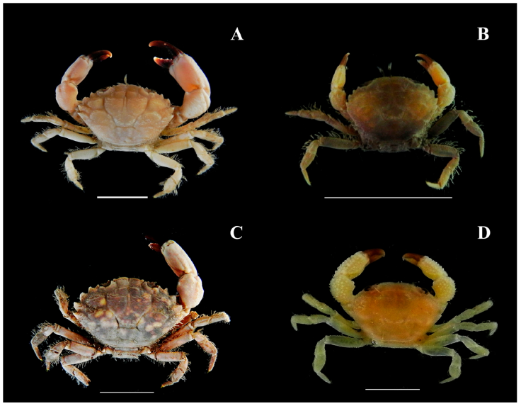 Material examined. 24 M, size range: 3.35 ≤ CW ≤ 13.44 mm; 14 F, size range: 5.59 ≤ CW ≤ 11.74 mm; 4 OF, size range: 7.54 ≤ CW ≤ 7.83 mm; 2 J, size range: 4.6 ≤ CW ≤ 6.27 mm; CCDB 6530.