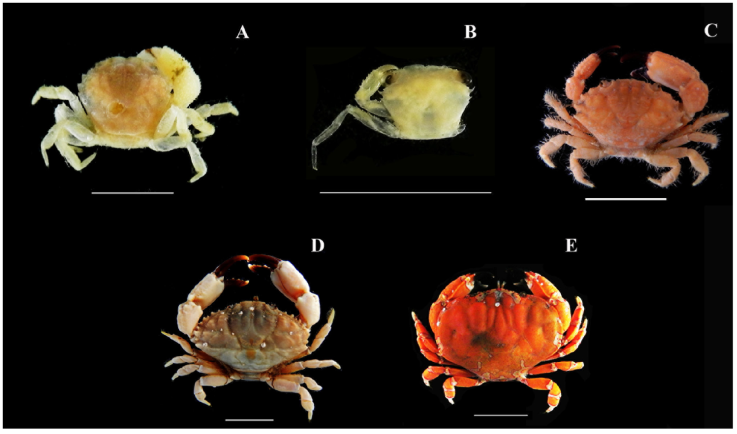 Material examined. 2 M, size range: 10.19 ≤ CW ≤ 32.81 mm; 1 F, size: 7.99 mm CW. CCDB 6522.