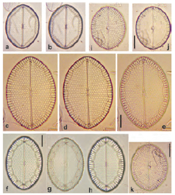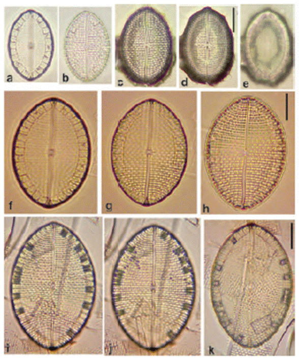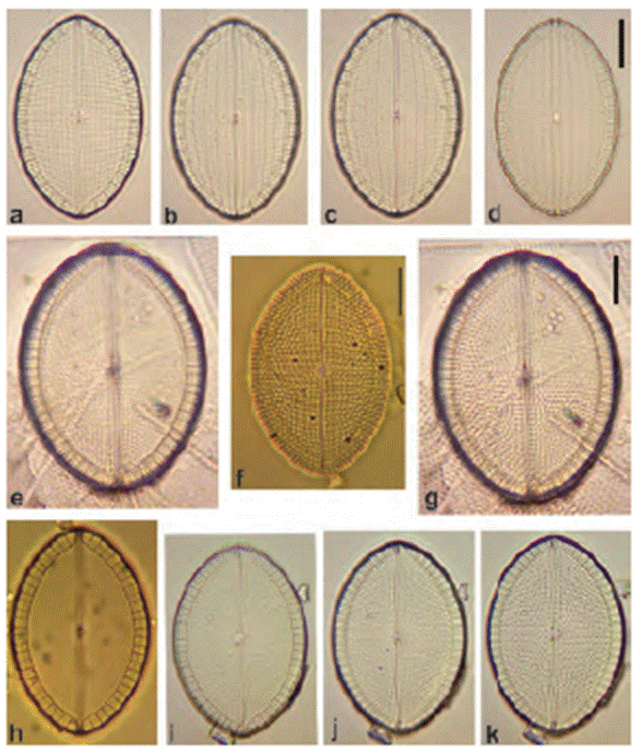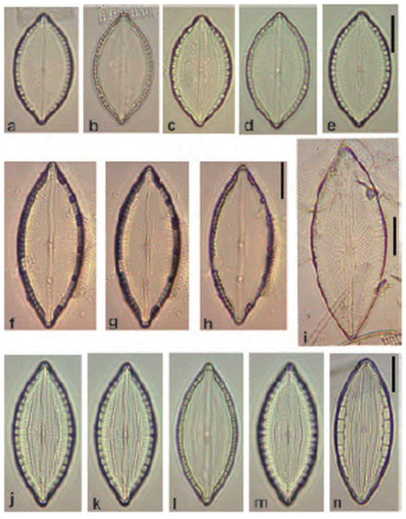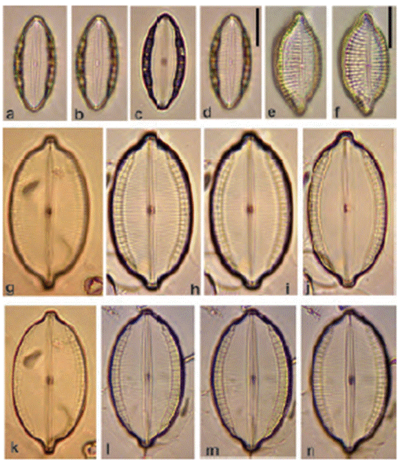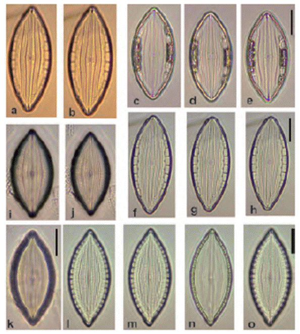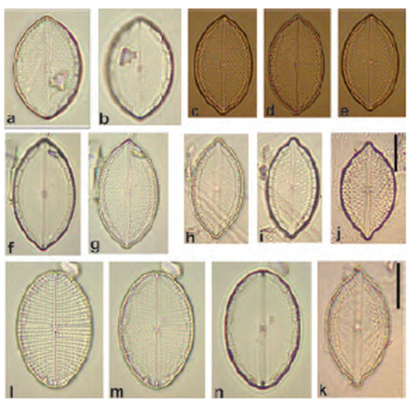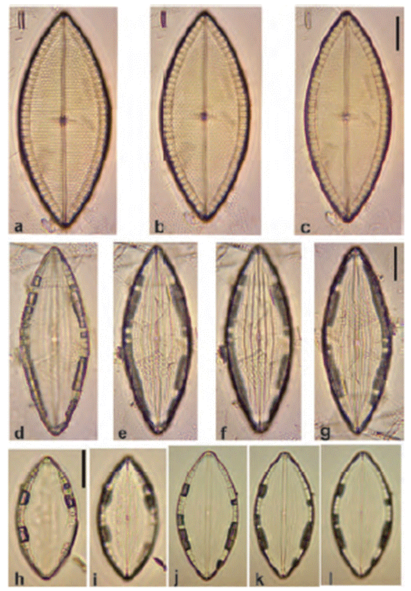 Mastogloia acutiuscula var. elliptica F. Hustedt (Fig. 3 a-l) References: Hustedt (1959); Loir and Novarino (2013); Witkowski et al. (2000).
