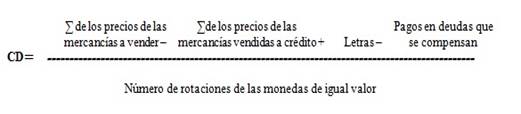 Las relaciones crediticias hacen innecesario el dinero con mucha frecuencia, incluso en calidad de eslabón final. Es necesario saber cuáles mercancías son vendidas por dinero y cuáles a crédito, cuáles de estas últimas se pagan mutuamente y cuáles saldos hay que pagar en dinero. Si este último no solamente funciona como medio de circulación sino también como medio de pago, entonces -según Marx (2017)- esta ley se formula así: