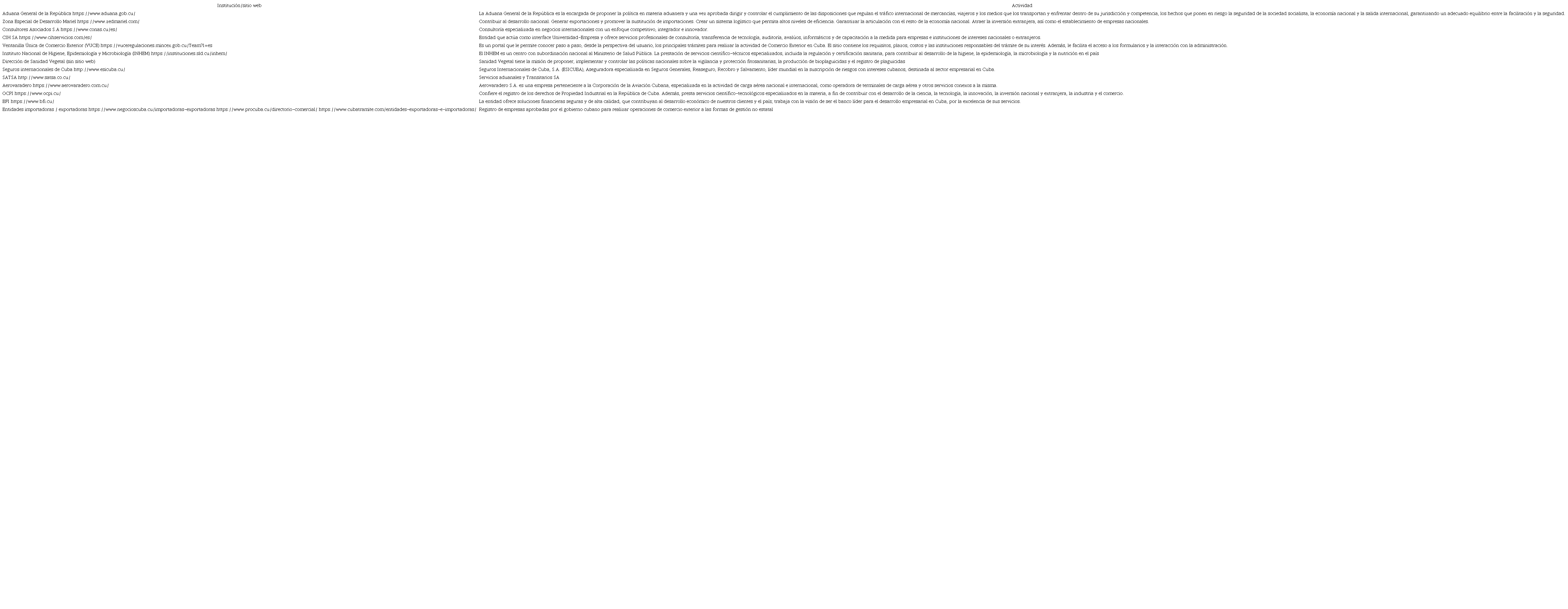 Anexo 4. Algunas de las principales instituciones de apoyo al comercio para el comercio exterior en Cuba
