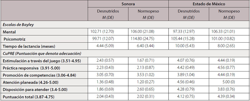 Crianza, nutrición y desarrollo infantil en niños de Sonora y del Estado de México