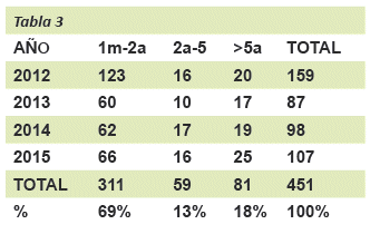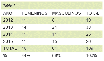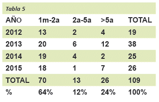 Existieron 109 fallecidos, la gestión con mayor número de óbitos fue el año 2013 con 38 casos (ver tabla 1), siendo el sexo masculino el más comprometido con 56% de casos (ver tabla 4) y el grupo etario de 1 mes a 2 años reporto una de mortalidad de 64% (ver tabla 5).