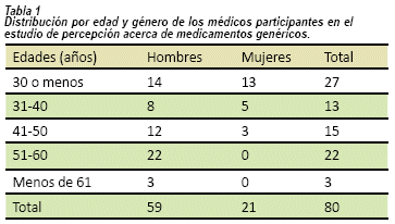 It is common to hear medical mistrust of the effectiveness of generic drugs. The objective of this study is to quantify the acceptance of physicians linked to the General System of Social Security in Health of Colombia to the prescription of generic drugs. Was performed across-sectional, descriptive study. Eightydoctors in clinical practice were interviewed, all doctors who made clinical consultation in the practice sites of a Medical School of Cali-Colombia. The results show that the physicians consulted are clear about the concept of generic medicine and 89.6% of them consider the generic product essentially similar to the original reference medicine, but at the same time, they tend to think that generic products do not comply with the desired therapeutic effect. It is also stand out that 74,4% of doctors consider that patients value the use of generic products little.