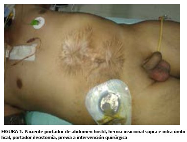 Abstract: The hostile abdomen is a severe complication, resulting of multiple emergency surgical interventions, performed to control septic abdominal processes, anastomotic leakage, and postoperative complications and avoid a compartment syndrome. This sequence of surgeries lead to the creation of ostomies, aponeurotic retraction and the formation of intraperitoneal fibrous adhesions; creating a difficult abdomen to approach at the moment of reconstruction and abdominal closure once the acute phase is over.The clinical case of a 24 year-old male patient is presented, with a history of nine surgeries due to a complicated appendicitis, carrying an ileostomy, giant insicional hernia and a frozen abdomen. He came for the restitution of intestinal transit and repair the hernia defect; representing surgical challenge of a multidisciplinary management with high psychological as economic impact for the patient, where decisions are based on intraoperative findings.