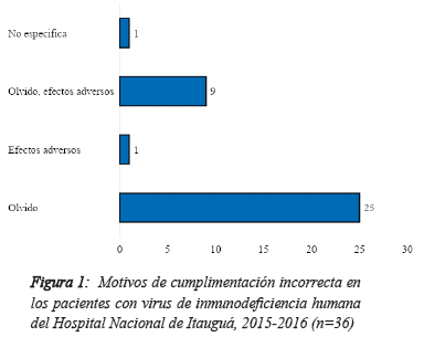 Objetivo: Identificar los factores asociados a la falta de adherencia al tratamiento antirretroviral en pacientes infectados con VIH que acuden al Hospital Nacional de Itauguá, septiembre 2016.